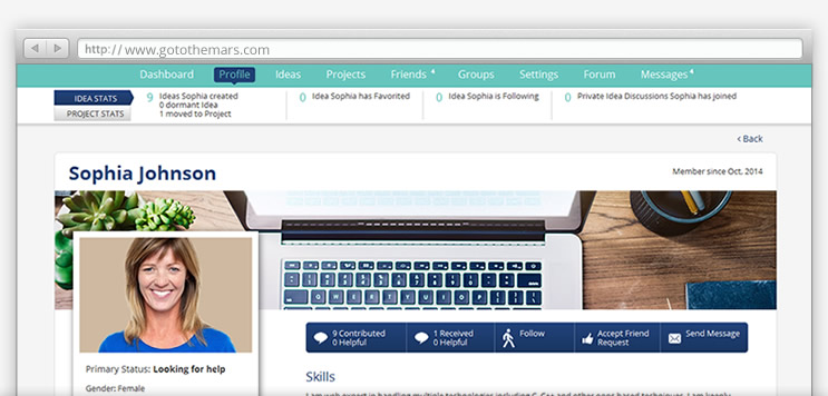 By clicking the "Edit Profile"option you can edit the personal and geographical information you have added while creating your account. You can add and change more information by clicking the "Add/Edit Other Info" under Profile Tab. Information like your skills, achievement, education, experience and the areas you are interested to explore. You are encouraged to provide as much and as accurate information as you would like in your profile as such information will help other users find you. You can also add web links of your social profiles from other sites (e.g. Facebook, Twitter, LinkedIn etc.) and you can also switch your primary status between "looking for help"and "looking to help".