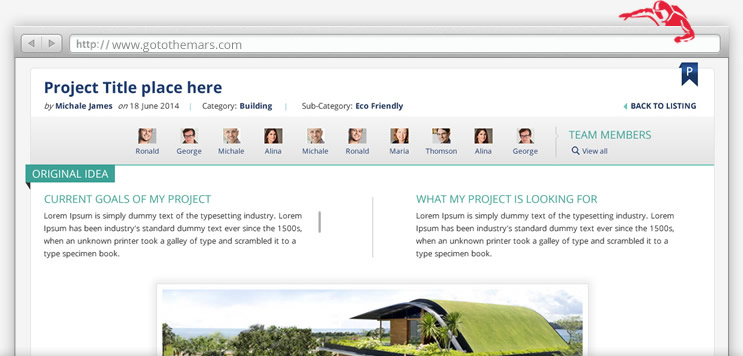 A project log can be added to record milestone project activities. All the project members can update the log. The log will be visible to all the users of GoTotheMars. To view the log of a project, click on the "Project log"button in the team members section.